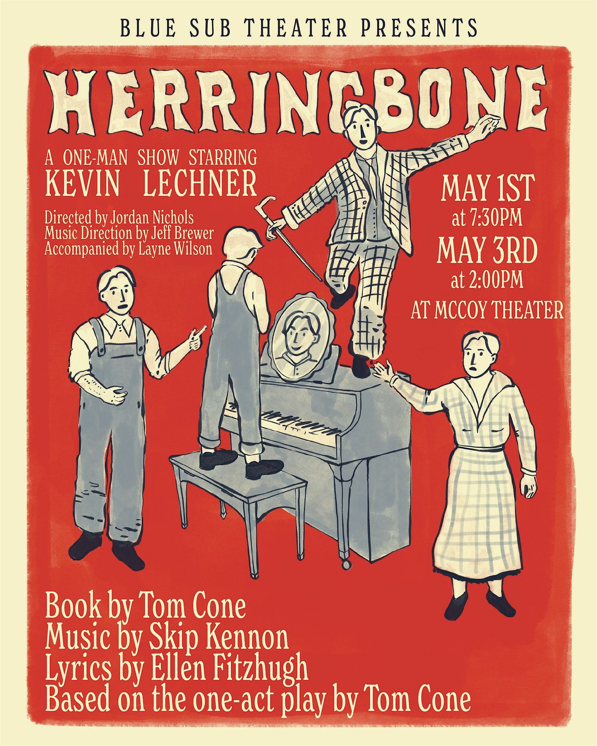 Herringbone is a one-man show featuring Kevin Lechner, with Direction by Jordan Nichols and Music Direction by Jeff Brewer!