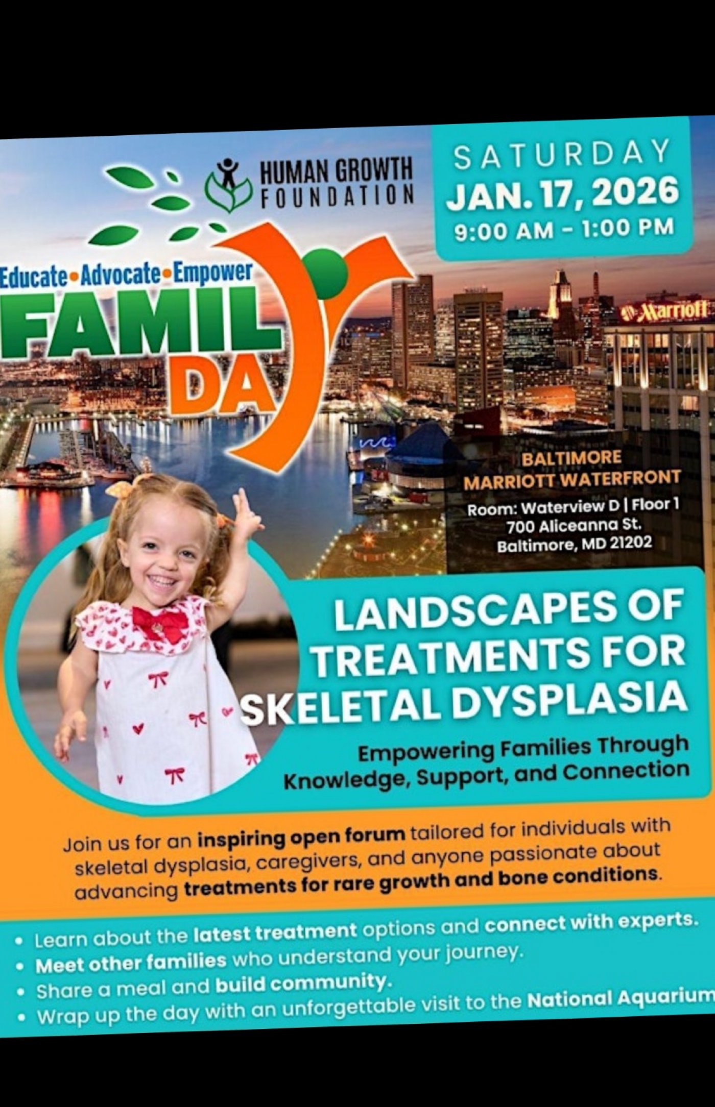 Join the Human Growth Foundation (HGF) for a FREE Skeletal Dysplasia Family Day—an inspiring morning of expert insights, community connection, and support, plus a special National Aquarium experience for registered attendees! Don't miss this opportunity to learn, connect, and create lasting memories. We can't wait to see you there!