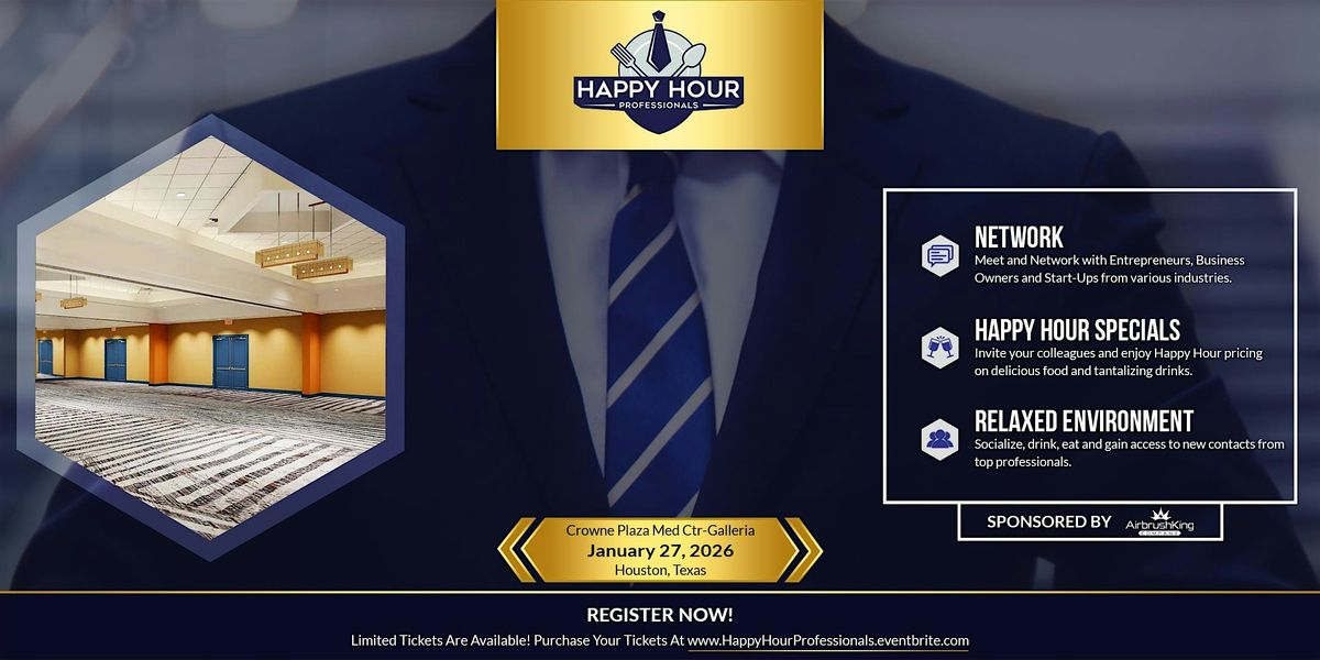Welcome to (HHP) Happy Hour Professionals Houston. Come socialize and network with Top Professionals, Entrepreneurs and Business Owners in the Houston and Texas area on Tuesday, January 27 at Crowne Plaza Med Ctr-Galleria from 6-9pm. Happy Hour Professionals is a networking event that allows professionals to grow their network by providing a relaxed environment for them to market their company or themselves effectively. We are the perfect Happy Hour to attend when wanting to wind down, drink, eat and meet valuable like-minded professionals after work.