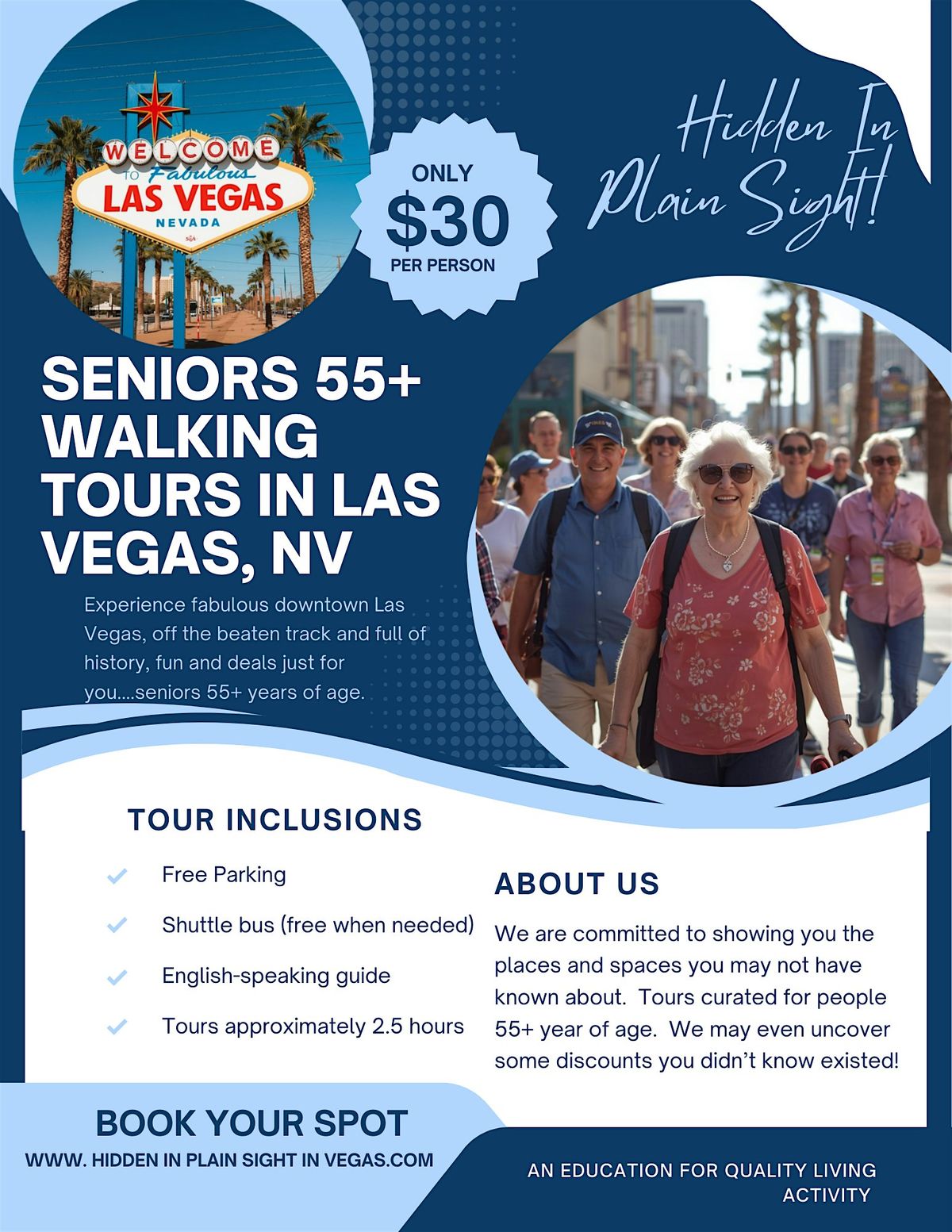 Hidden In Plain Sight™ is a small-group, slow-paced walking tour designed for curious adults 55+ who want to experience Downtown Las Vegas in a thoughtful, engaging way.