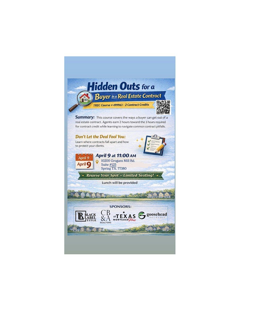 Ready to uncover the hidden outs in real estate contracts? Join us in person for a hands-on session where you'll learn all about the sneaky clauses that can protect buyers.