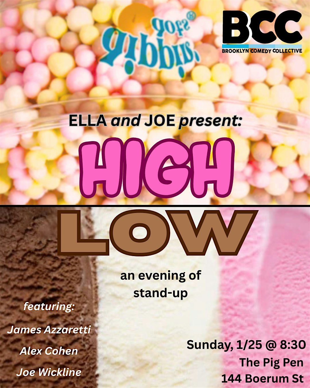 Weeks ago, Ella and Joe developed a theory of everything. They called it "High Low." They decided that if such a complicated idea were to be universally understood, it had to be presented in a medium beloved by the simplest of people: stand-up comedy. Join Ella and Joe and friends for an hour that will bust your gut and blow your mind.