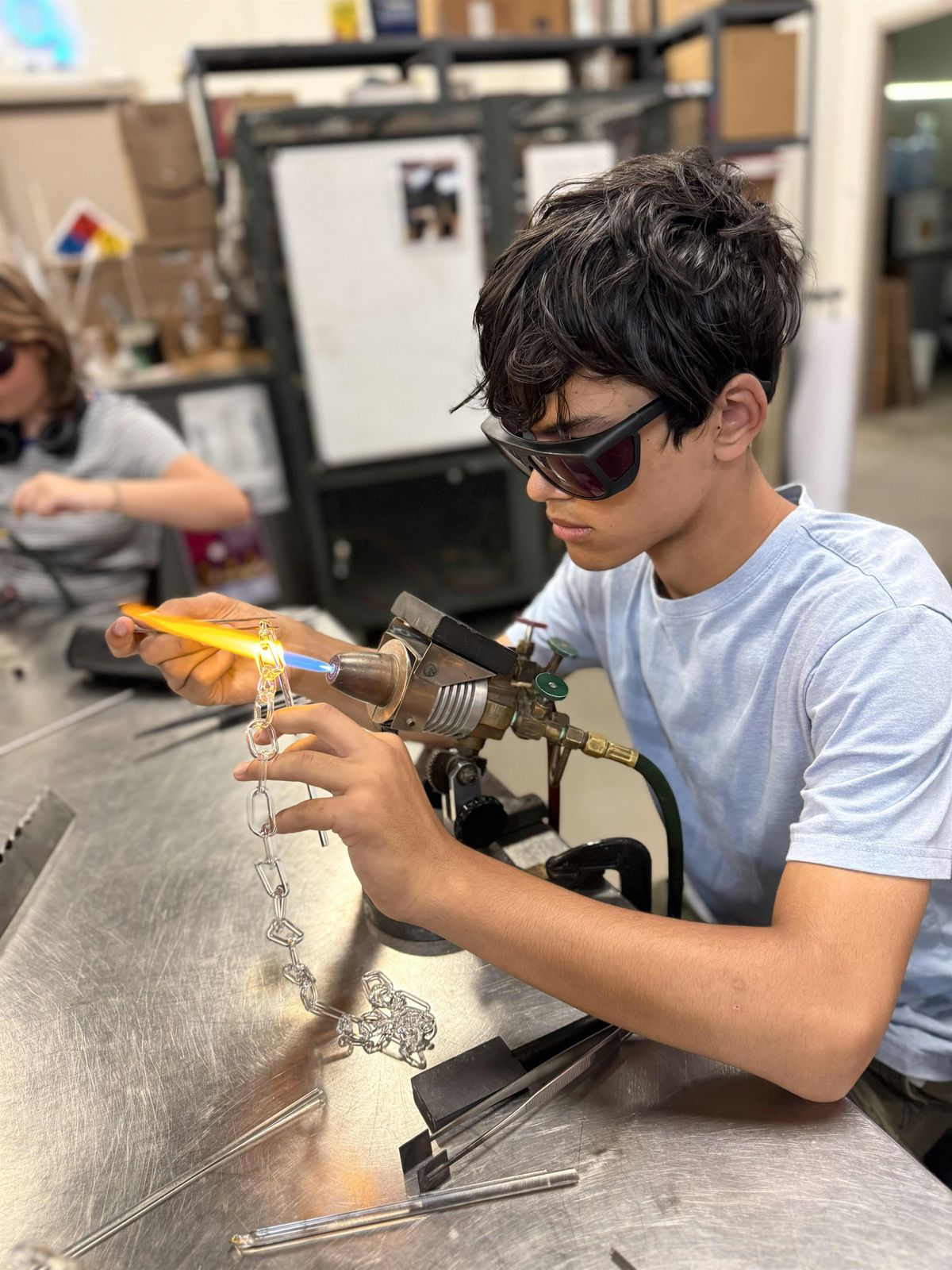 Flameworking requires a little practice at heat control with the torch (2,000°F) to create successful sculptures. This is primarily a seated activity. The environment can be bright and loud at times. Handling glass and tools may require a certain level of dexterity. Learn more on our Accessibility page.
