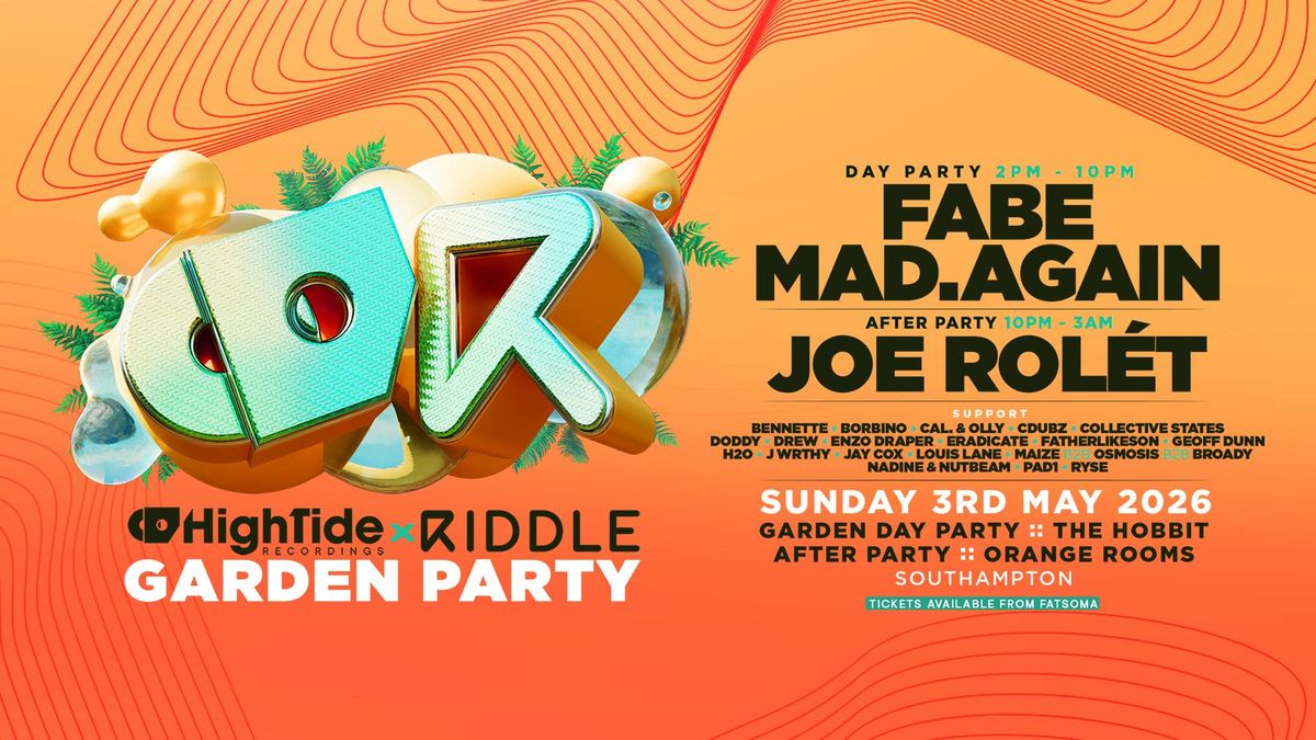 High Tide X Riddle - Garden Party @ The Hobbit & After PartySunday 3rd May 2026, 2.00pm – 10.00pm (After Party @ Orange Rooms 10.00pm – 3am)