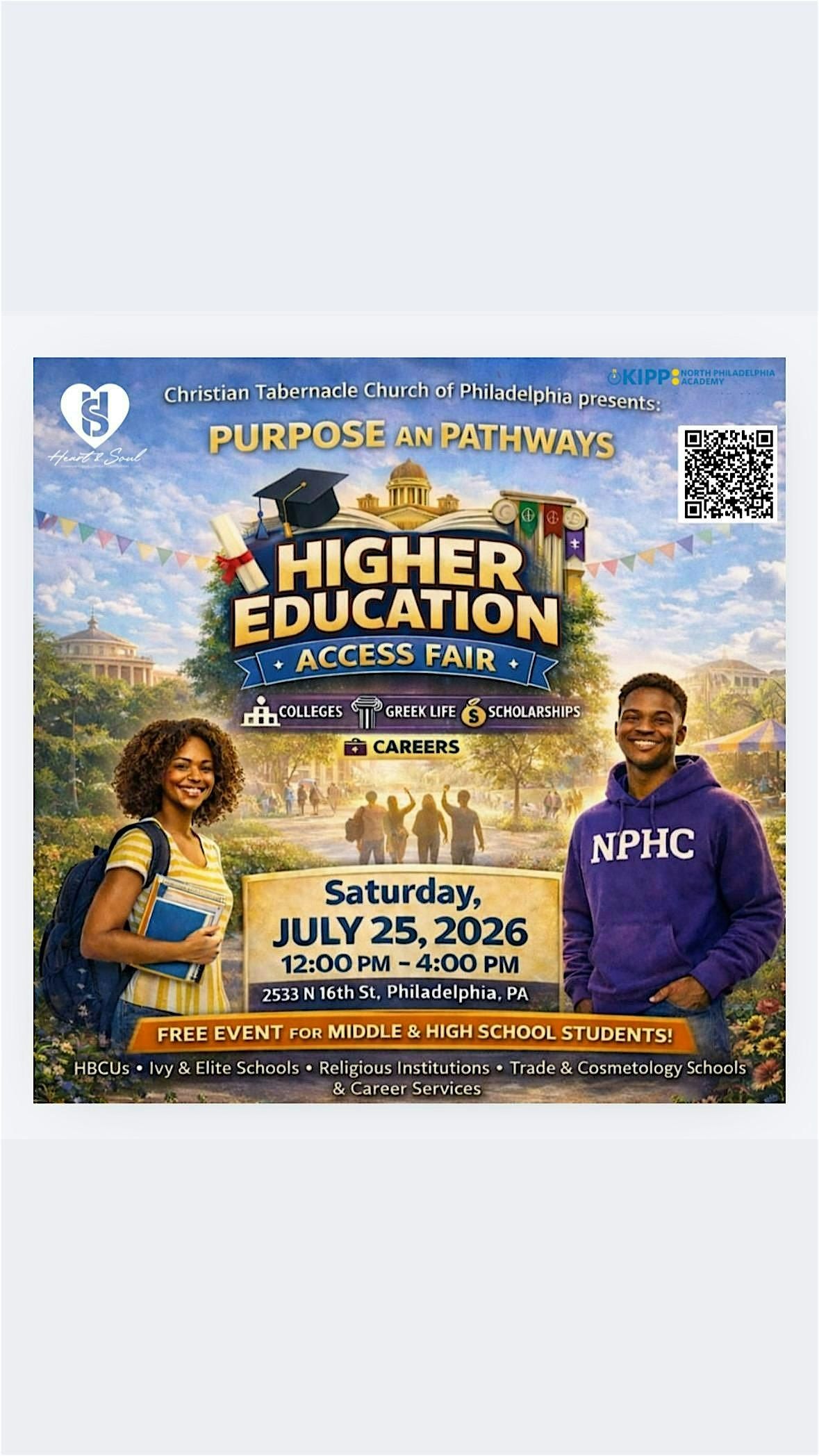 The Higher Education Access Fair is a free, citywide experience designed to connect students and families with colleges, universities, Greek organizations, and community partners from across the country. Attendees will explore academic programs, scholarships, campus life, and college culture while engaging directly with admissions representatives, alumni and current college students.