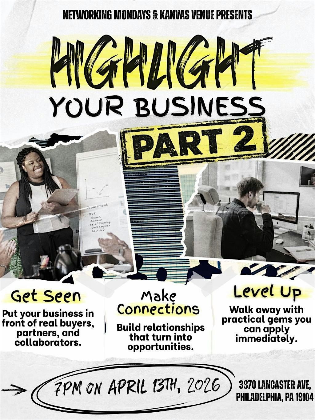 Join us for Highlight Your Business: Part 2, an intentional networking experience designed to help entrepreneurs, business owners, creatives, and professionals connect, grow, and gain valuable insight.