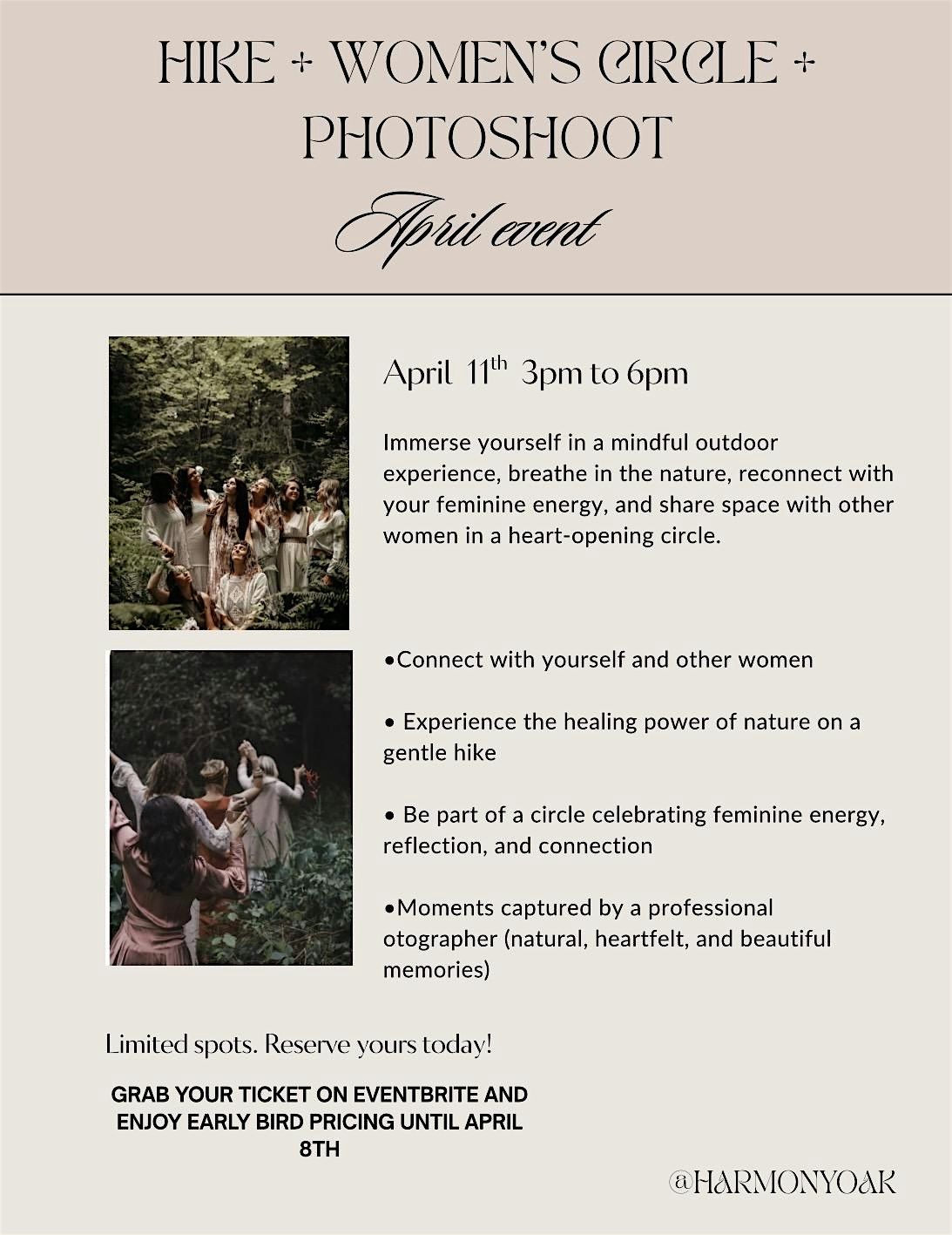 Immerse yourself in a mindful outdoor experience, breathe in the nature, reconnect with your feminine energy, and share space with other women in a heart-opening circle.