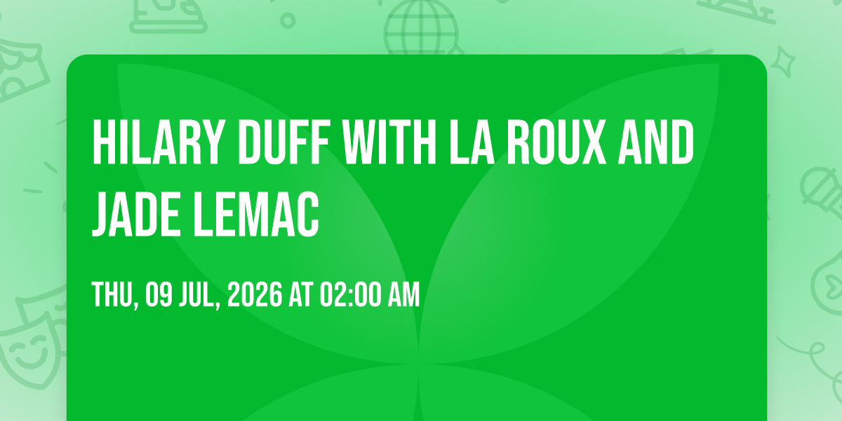 📍 Location: 33.9582, -118.342✨ Discover the extraordinary at Hilary Duff with La Roux and Jade LeMac, where magic meets reality in ways you've never imagined! 🏛️ Set in Kia Forum nestled in bustling Inglewood, CA, this event promises to be a landmark occasion. 📅 Taking place on July 10th, 2026 at 02:00 AM, it's going to create an atmosphere where every moment becomes a cherished memory. 🌟 Immerse yourself in an experience crafted with attention to every detail, designed to surprise and delight at every turn. They have worked tirelessly to ensure this event exceeds all expectations, bringing together elements of entertainment, innovation, and pure joy. 🎊 Don't miss your chance to be part of this remarkable journey!