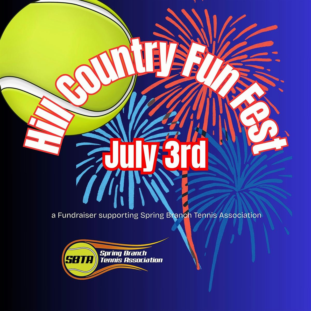 In it's 9th year, this is a family-friendly celebration, hosted by the Spring Branch Tennis Association (SBTA), featuring music, a market with local artisans, food trucks, beer & wine, a kids zone, and the ONLY public & professional FIREWORKS SHOW in the area for the holiday!!
