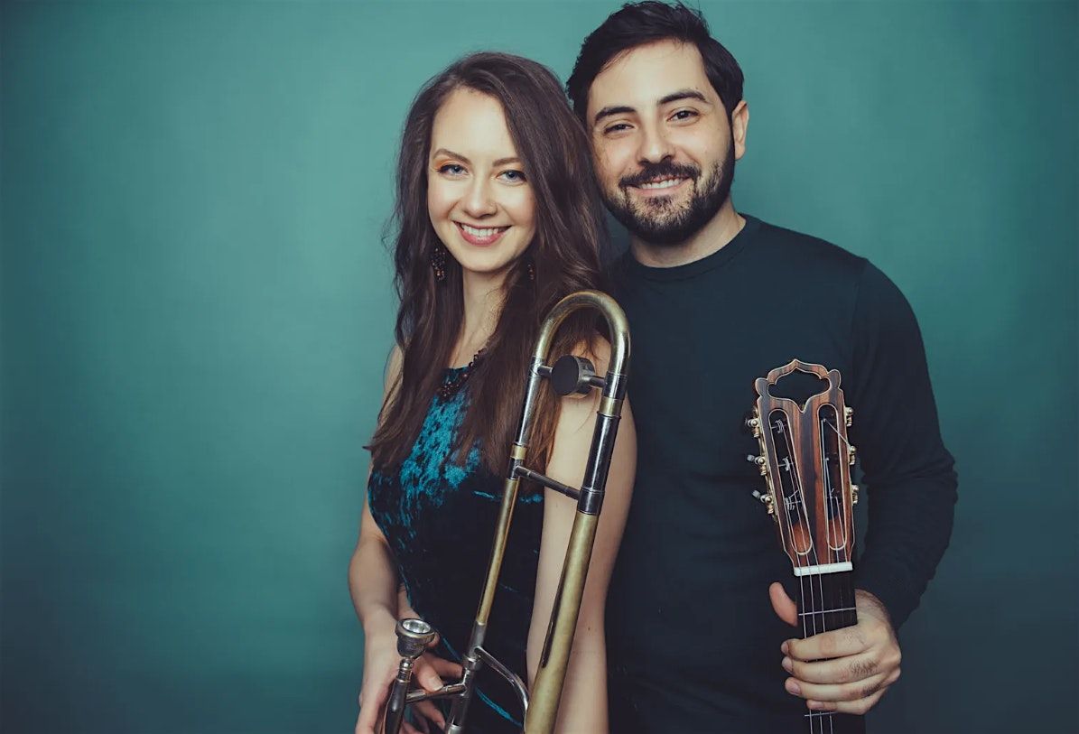 Describing the musical partnership of Natalie Cressman and Ian Faquini as a duo is accurate, but their collaboration contains multitudes. She’s a trombonist, vocalist and songwriter from San Francisco. He’s a composer, guitarist, and singer from Brasilia. Together they’ve honed a singularly expansive creative communion encompassing their love of the Brazilian songbook, jazz, Impressionism and sophisticated pop songcraft