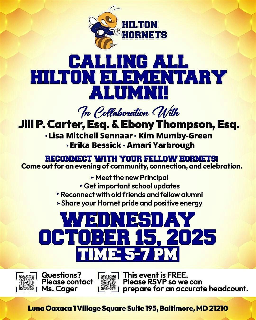 Hilton Elementary alumni, this is our moment to reconnect! Join us for an evening filled with school pride, important updates, and meaningful connections.