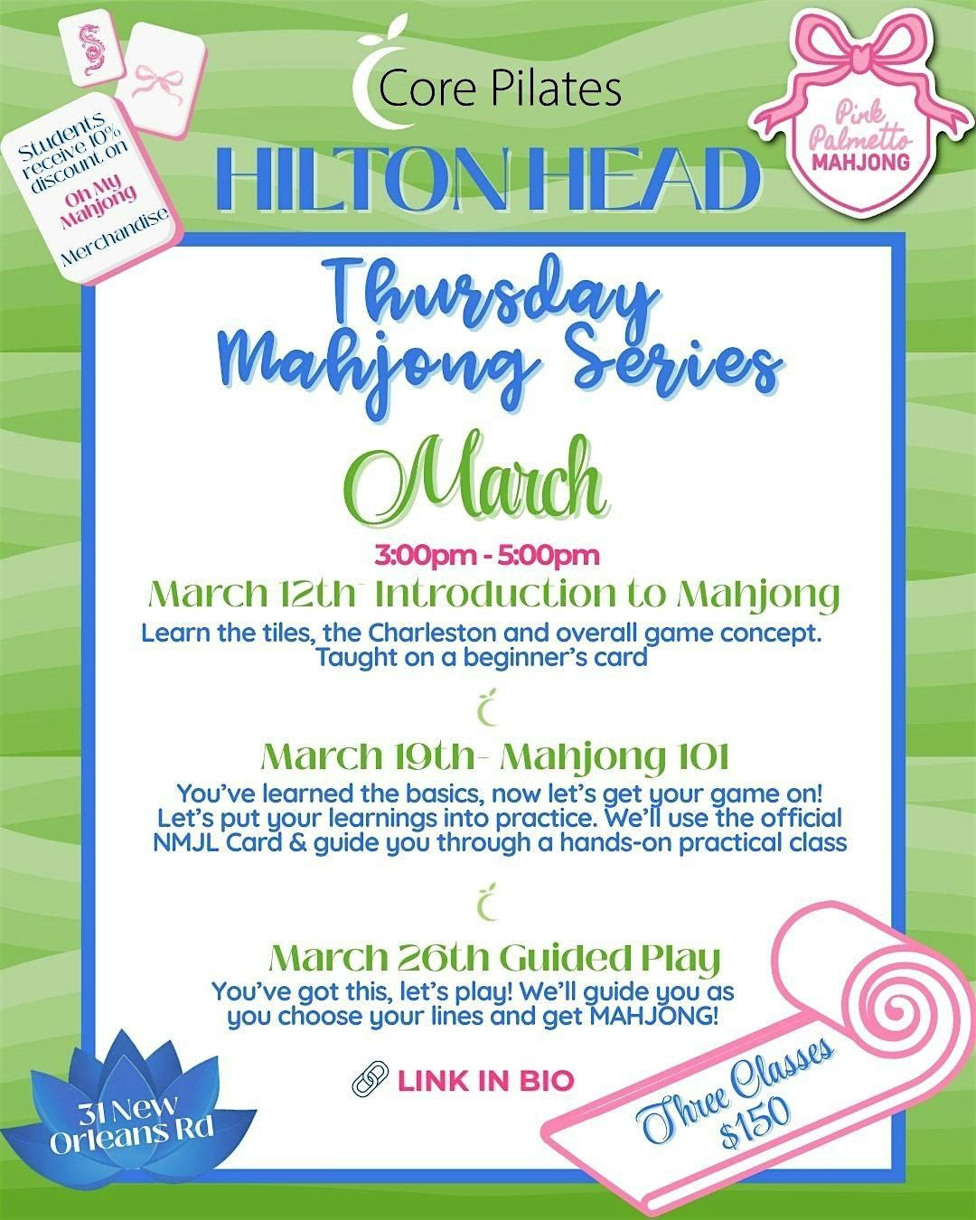 This three-part beginner series is designed for true beginners, giving you all the knowledge you need at a comfortable, easy-to-digest pace. We’ll break down the tiles, rules, and flow of the game step by step, with plenty of guided play and time for questions.