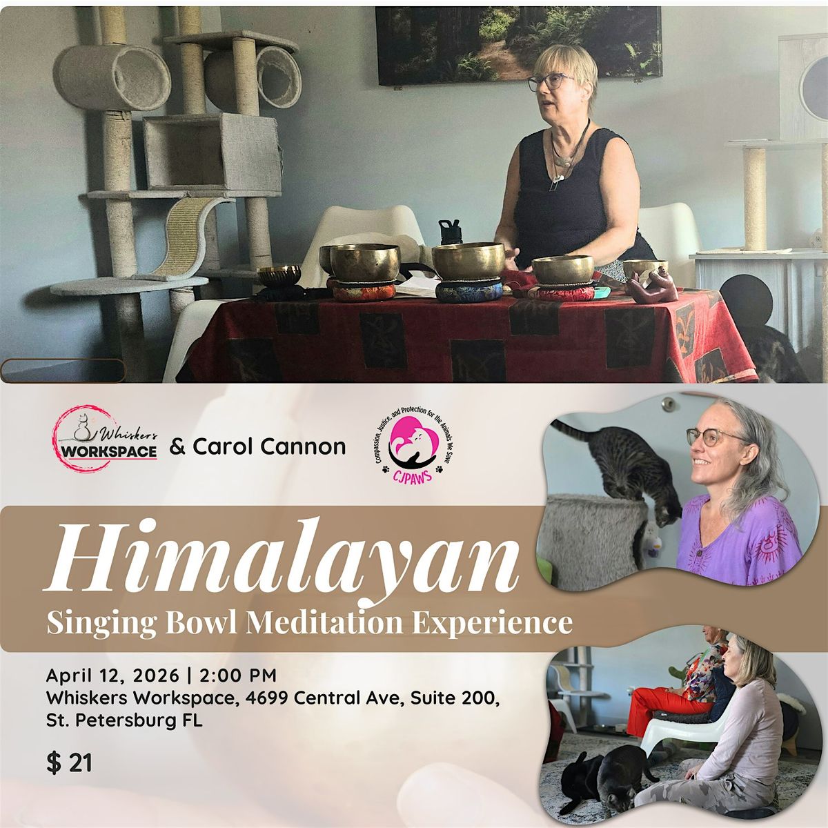 Don’t miss your chance to experience a deeply calming Himalayan Singing Bowl Meditation in St. Petersburg, FL on April 12, 2026 at 2PM at Whiskers Workspace, the first cat coworking space in St. Pete.