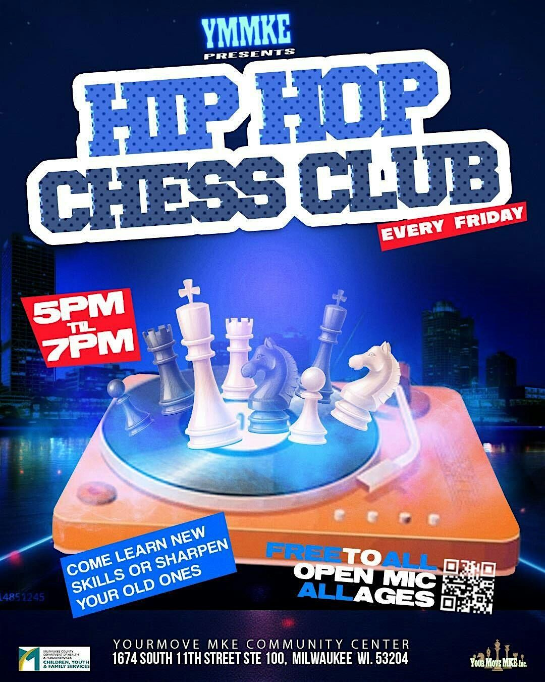 Hip Hop Chess Club is a space where the community comes together to sharpen the mind, express yourself, and have fun — all while surrounded by hip-hop culture.