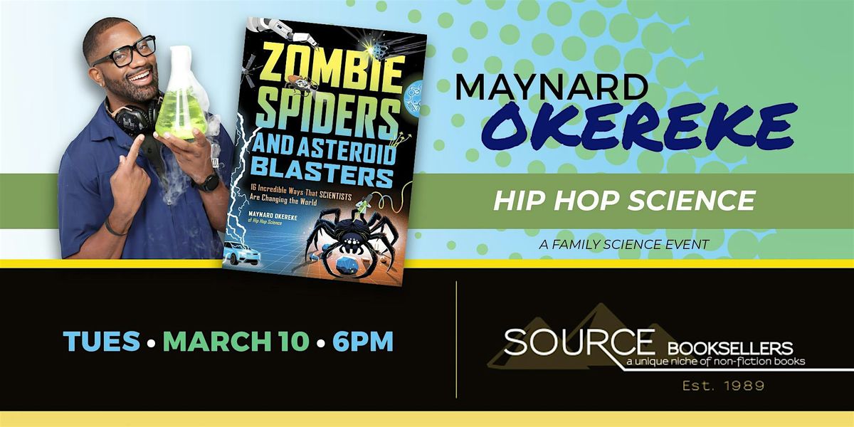 The Hip Hop Science Show LIVE in Detroit with Maynard Okereke, don't miss this educational, entertaining and interactive one hour event. Maynard will be serving up laughs, while celebrating his new book Zombie Spiders and Asteroid Blasters: 16 Incredible Ways That Scientists Are Changing the World. Best for readers ages 8 to 12, grades 3 to 7.