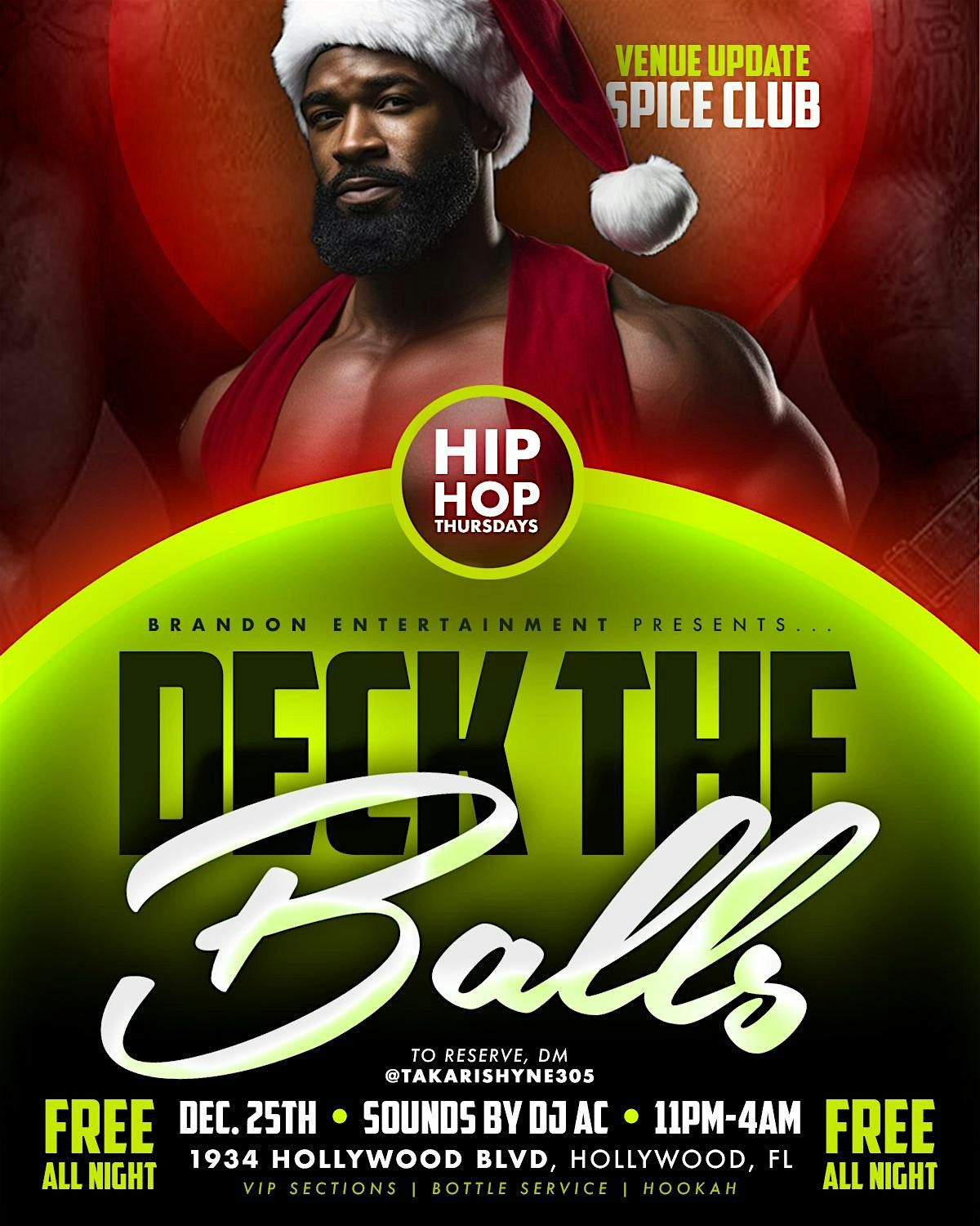 DECK THE “BALLS” WITH BOUGHS OF HOLLY OR WHATEVER SANTA SAID 😅 THIS THURSDAY, CHRISTMAS NIGHT WE OUTSIDDEEE! 🚨 NEW VENUE ALERT! “THE WELL” WILL BE CLOSED ON CHRISTMAS, BUT THE PARTY DON’T STOP! WE’LL BE MOVING THE PARTY TO SPICE CLUB IN HOLLYWOOD FOR ONE NIGHT AND ONE NIGHT ONLY! SAME LIT VIBES! STILL FREE ENTRY ALL NIGHT LONG! WE’LL BE THERE TIL 4AM! LETS GOOOO 💃🏾
