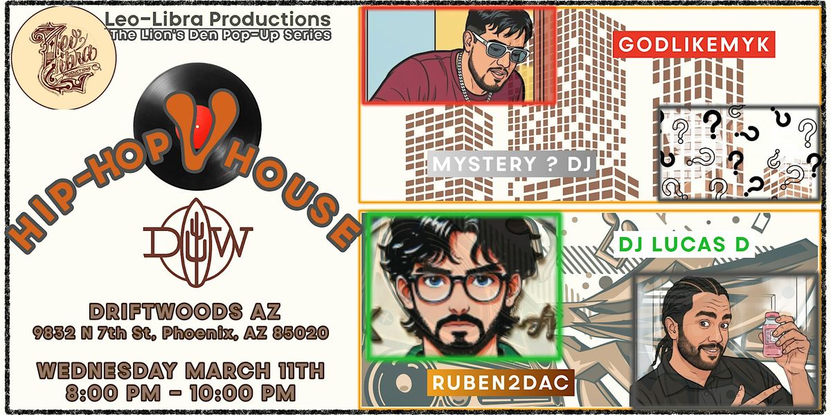 Info: DJ Lucas D leads the night with an incredible Hip-Hop set to set the tone. He is a fan of 90's HipHop in particular but he also likes club classics from the 2000s era. Expect music to get you grooving!