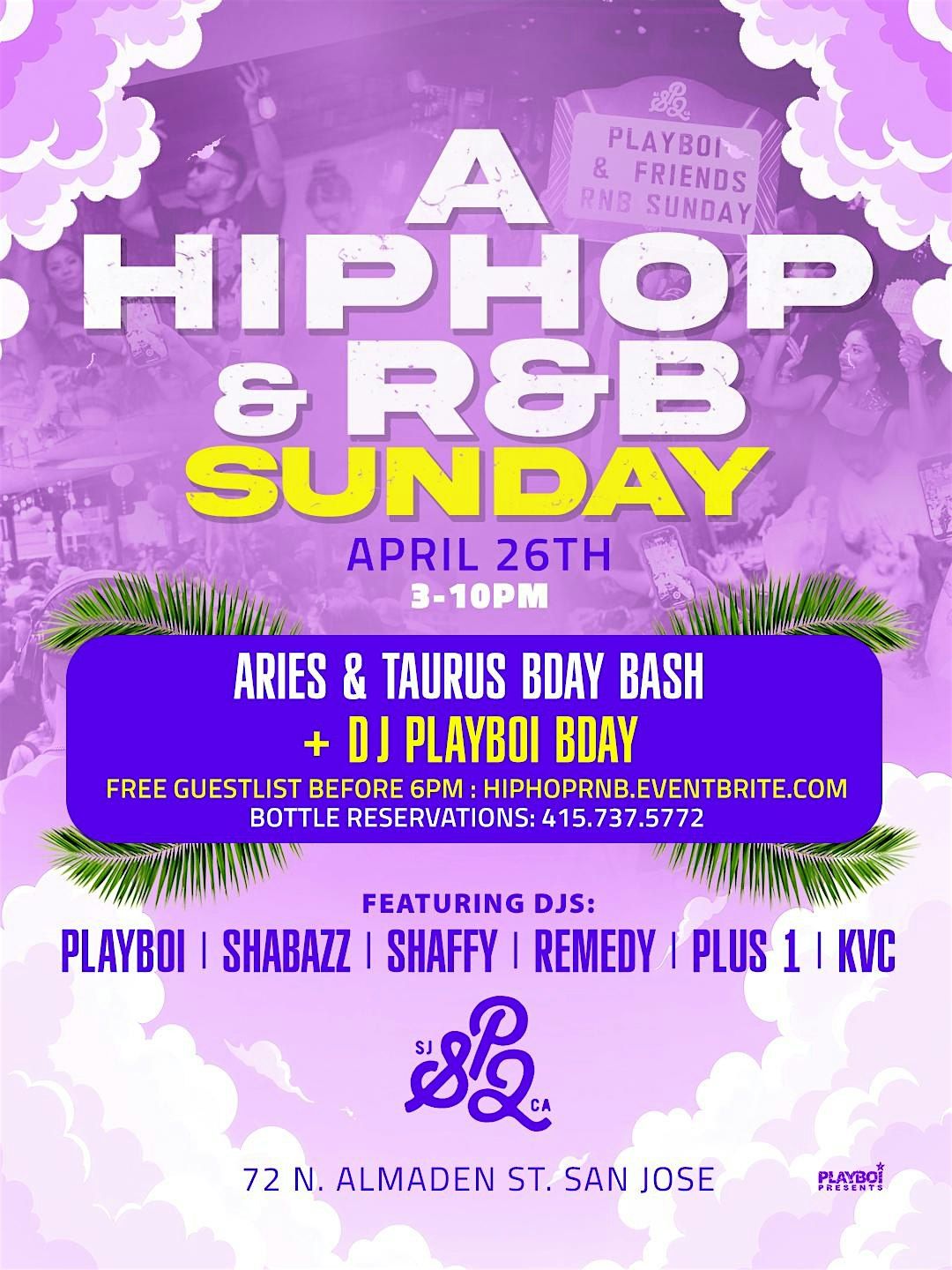 DAY PARTY IS HERE! HIPHOP & R&B + THROWBACK VIBES! THE 2026 ARIES & TAURUS BDAY EDITION IS HERE SUNDAY APRIL 26TH!! 3PM-10PM AT SP2 DOWNTOWN SAN JOSE!