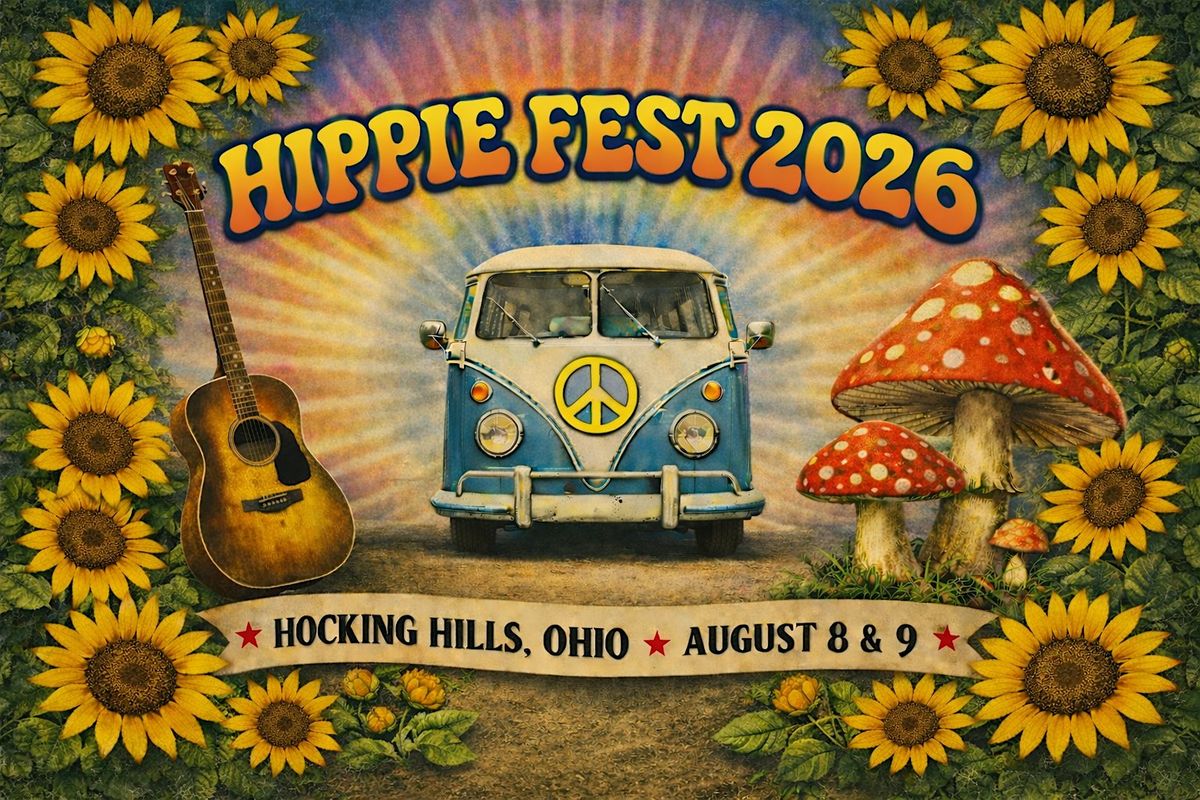 Hippie Fest is a family-friendly art festival featuring vibrant entertainment for all ages. Everyone is invited! Coming to Hocking County Fairground in Logan, OH August 8 & 9, 2026. Featuring live music, hundreds of bohemian vendor booths, vintage hippie car show, DIY tie-dye, giant bubble garden, sideshow performers, kids activities, delicious food, and more. All ages welcome. It's groovy baby!