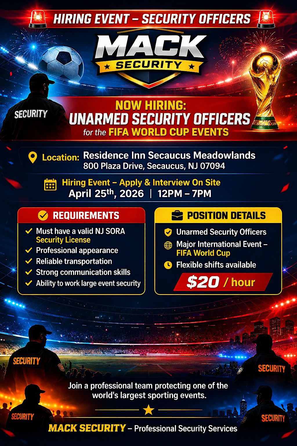 Looking for a new gig? Join us on April 25, 2026 at 11:00 AM (Eastern Time) at 800 Plaza Dr. Help us secure the biggest even in sports this year. FIFA World Cup.