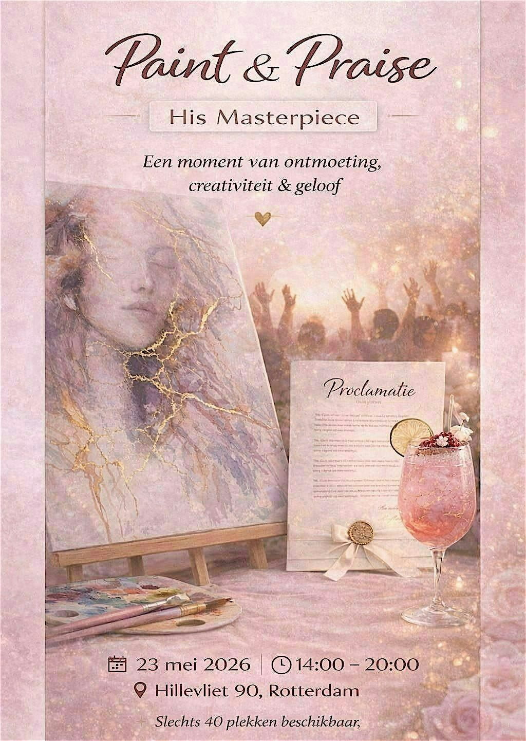 In de drukte van het dagelijks leven nemen we vaak weinig tijd om stil te staan bij wie we werkelijk zijn en wat er in ons leeft. His Masterpiece – Paint & Praise Experience biedt jou een moment om te vertragen, te reflecteren en jezelf creatief te uiten in een warme en inspirerende omgeving.