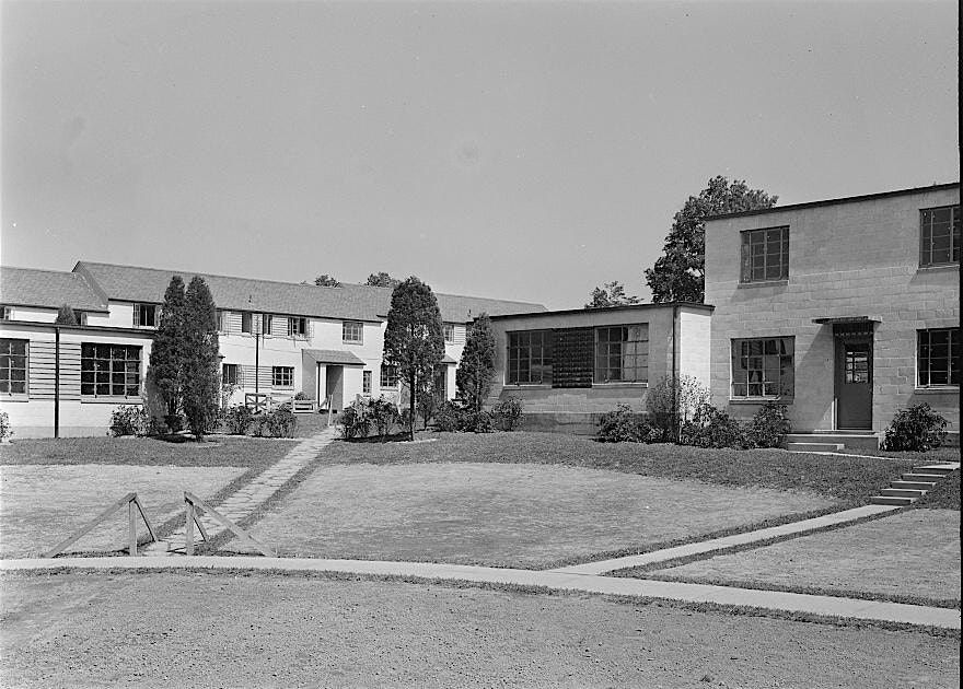 Greenbelt, Maryland, a National Historic Landmark planned community, was built in 1937 as part of Franklin D. Roosevelt’s New Deal. The town was designed as a garden city that would be a model of modern town planning and cooperative living in America. It features notable Art Deco-style architecture, fine examples of WPA-era outdoor sculpture, and an innovative design that includes walking paths that connect the homes to green spaces and the town center.