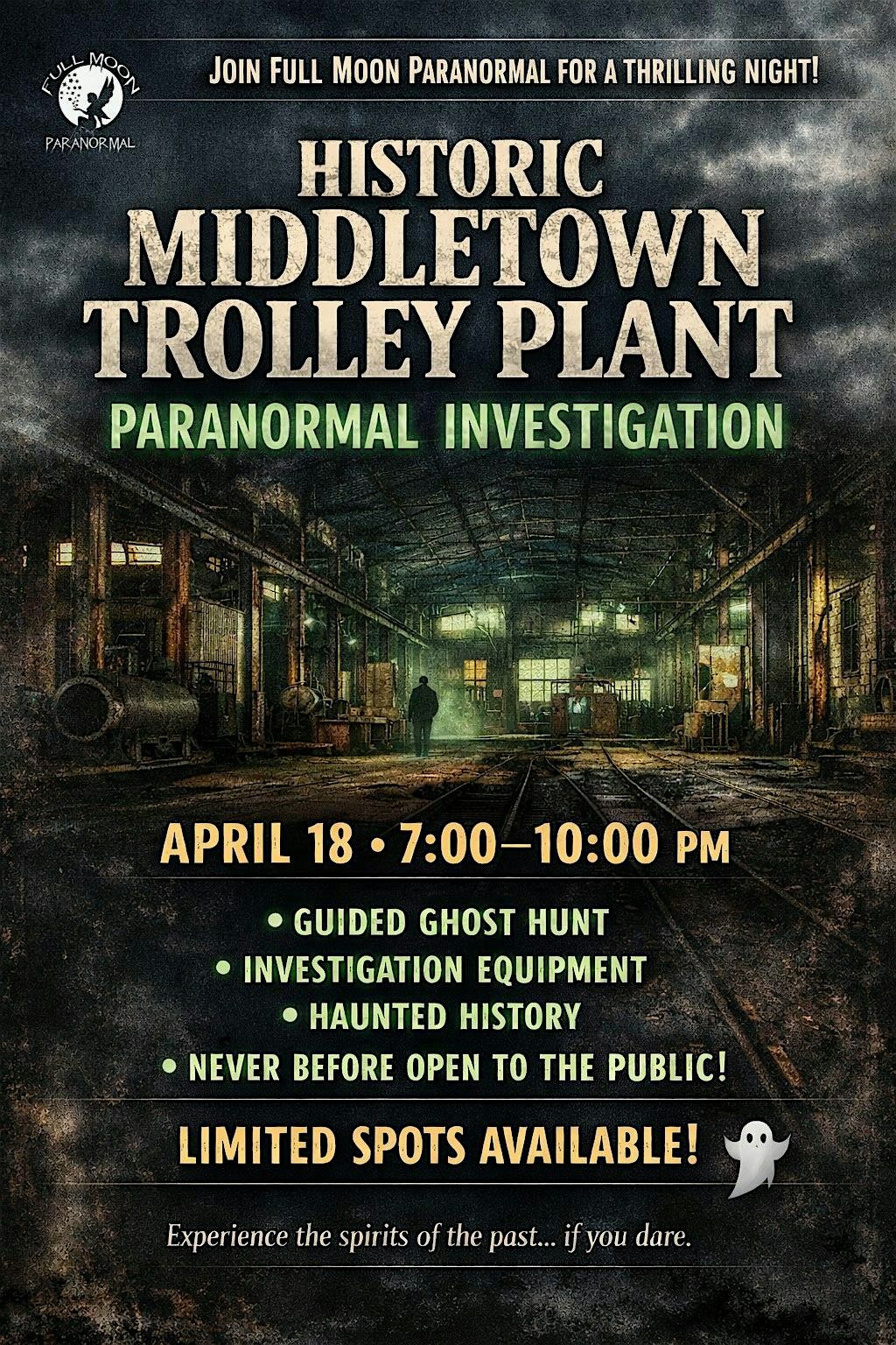 Join Full Moon Paranormal for a thrilling investigation inside the historic Middletown Trolley Plant.
