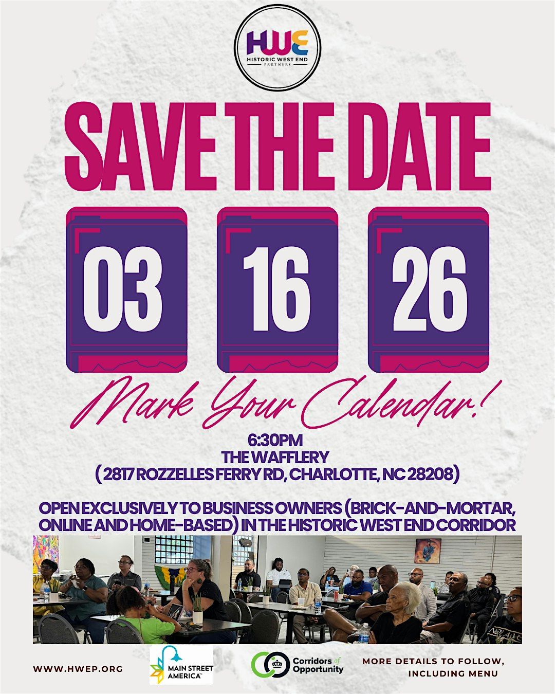We need your help to make some critical decisions. If you are a business owner in the Historic West End Corridor -- W.Trade/Rozzelle's Ferry, Oaklawn, LaSalle, and/or Beatties Ford/Sunset -- whether you are brick-and-mortar, home-based, or online with a business address in the area, please rsvp and attend the small business association meeting powered by Historic West End Partners.