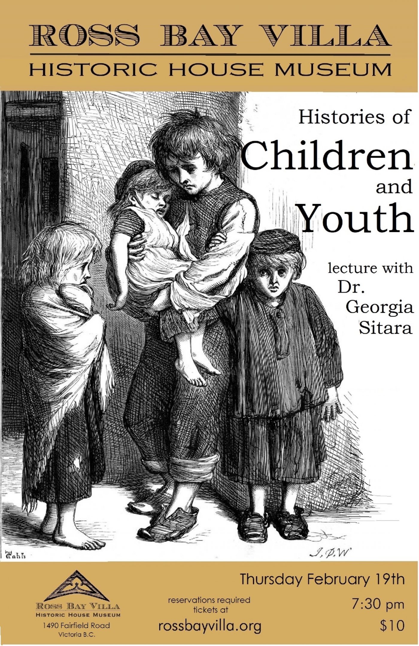 Slowly over the course of the late 19th and early 20th centuries, children and youth went from being workers and contributors within a family economy to being students. Childhood became characterized as a time of innocence and dependence. How does the inclusion of children and youth change how we understand history? This illustrated lecture will be held at Ross Bay Villa Historic House Museum at 7:30pm on February 19th.