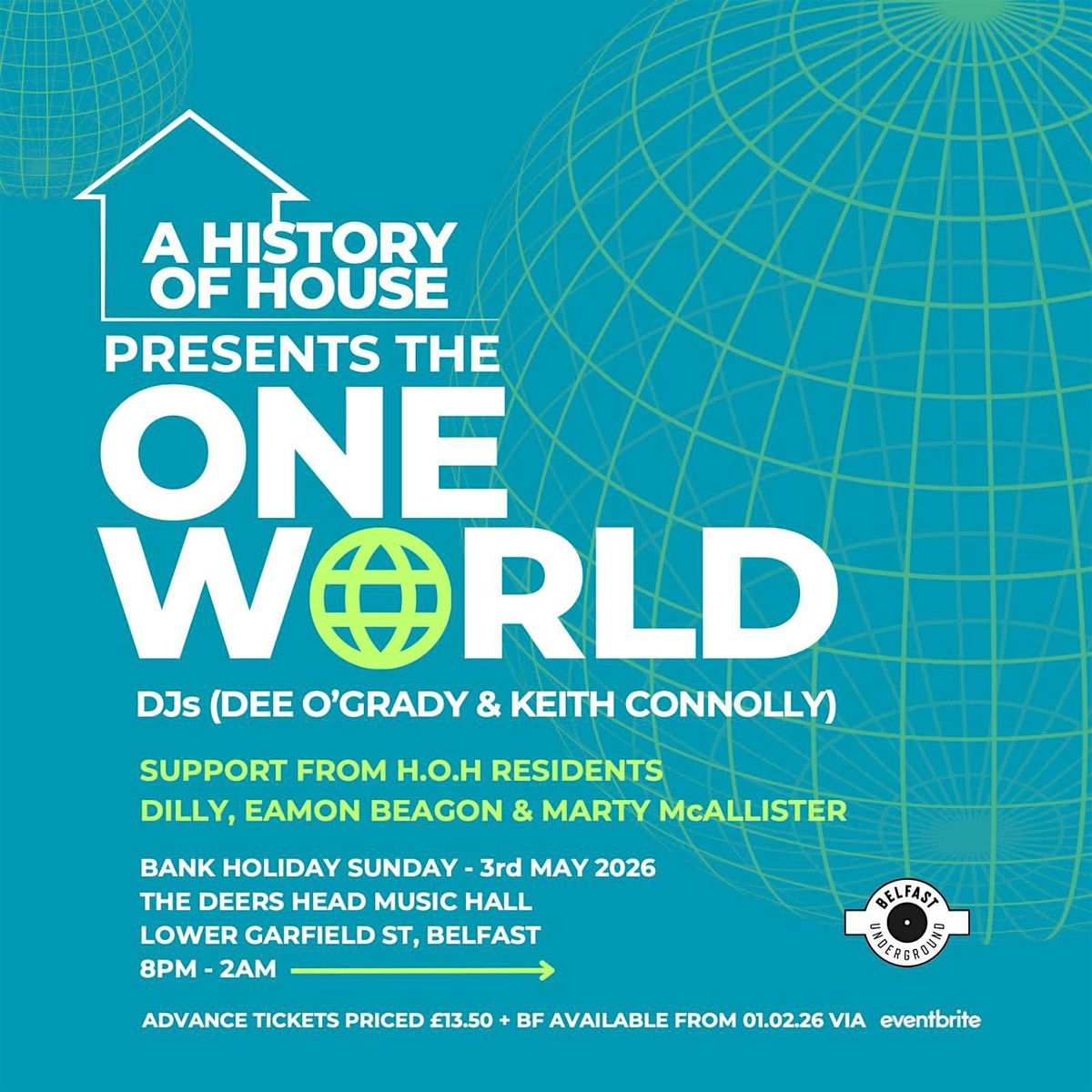 History Of House returns to The Deers Head on Bank Holiday Weekend Sunday May 3rd with a Belfast exclusive. From the Hedonistic nights of the Art College in the early 90s , under the massively popular One World & Choice Brands , we bring you Dee O’Grady & Keith Connolly digging into their vast knowledge of House Music collections what’s sure to be a fantastic night. Support comes from HOH Residents Dilly , Eamon Beagon & Marty McAllister. Tickets go live on Saturday February 1st.