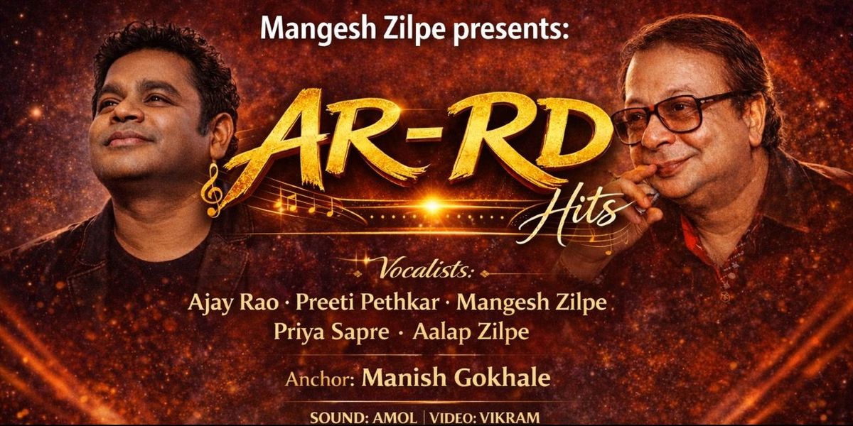 Get ready for a mesmerizing musical journey as Mangesh Zilpe presents a grand tribute to the timeless melodies of A.R. Rahman and R.D. Burman—two legendary music directors who transformed Bollywood music with their genius, innovation and unforgettable compositions. From the soulful magic of Rahman to the energetic, evergreen tunes of Pancham Da, this show will bring together a beautiful variety of songs that have ruled hearts for generations.