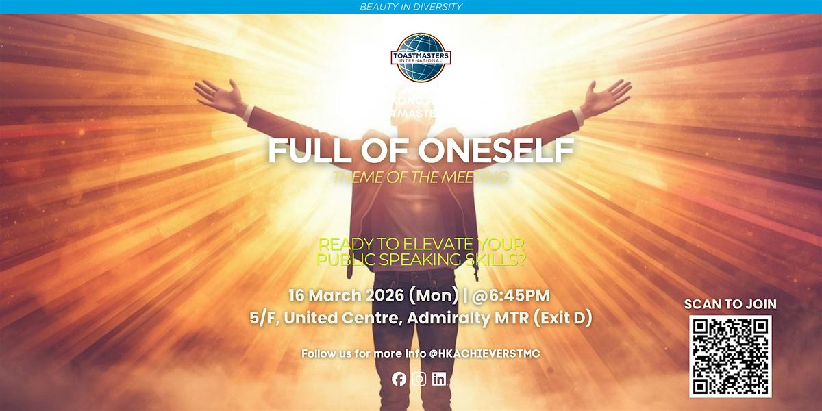 Join us this Monday at Hong Kong Achievers Toastmasters Club as we reflect on confidence, ego, and what it really means to show up fully as ourselves on stage and in life.