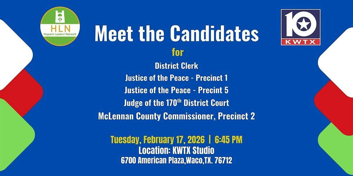The Hispanic Leaders Network (HLN), in collaboration with KWTX, invites the community to attend Meet the Candidates, an informative forum focused on local leadership and public service. This event provides residents with the opportunity to hear directly from candidates, understand their perspectives, and engage in thoughtful discussion on issues impacting our community.