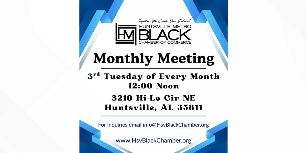 Join the Huntsville Metro Black Chamber of Commerce for our monthly meeting.About this Event
