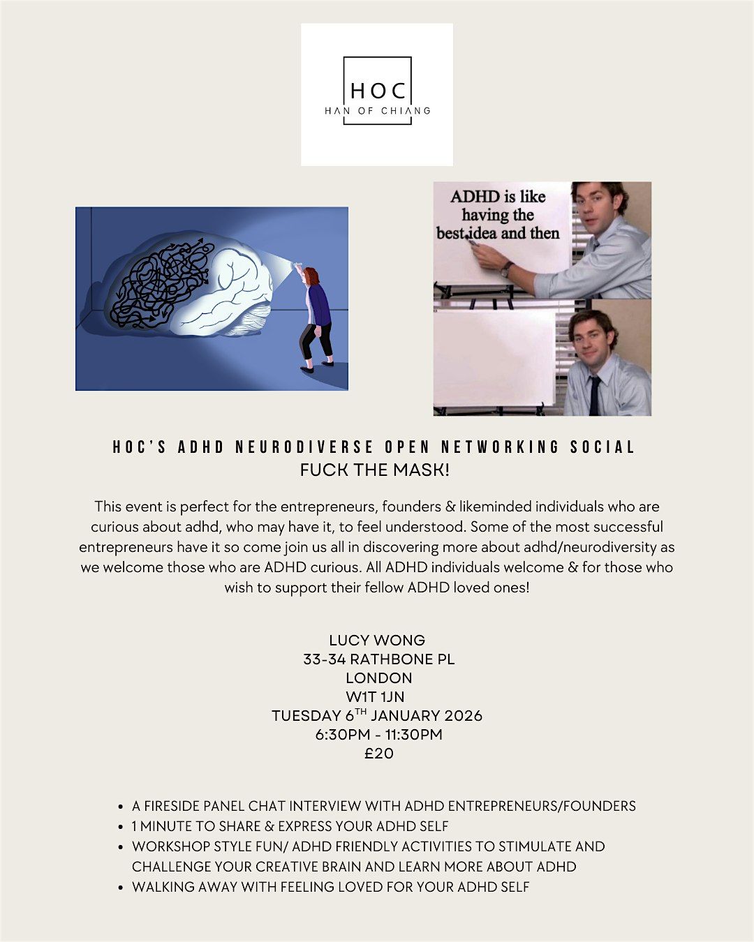 Han founder of HOC Consulting Ltd is hosting another addition of ADHD/NEURODIVERGENT Entrepreneurs & founders social networking.