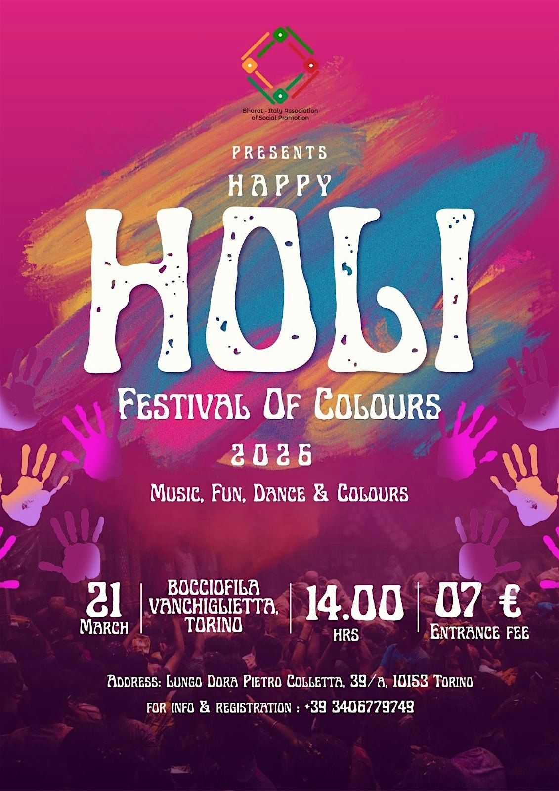 Bharat Italy Association of Social Promotion proudly welcomes you to Holi 2026!