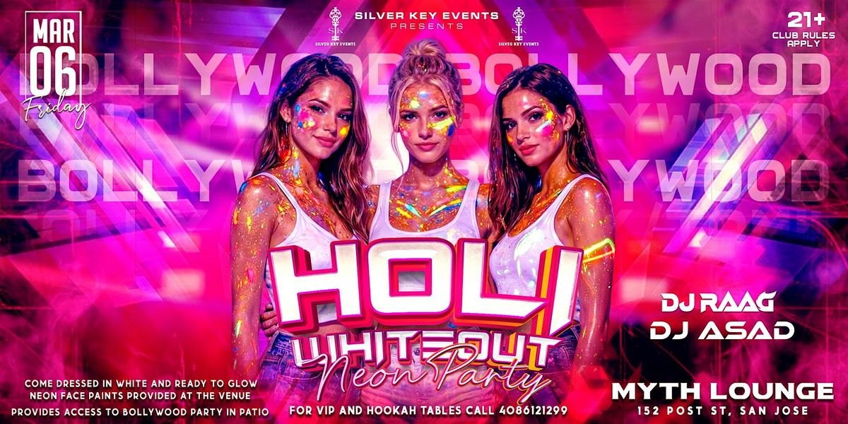 Ultimate HOLI party with a twist - wear all white, glow in neon, and dance to Bollywood beats at MYTH !!About this Event