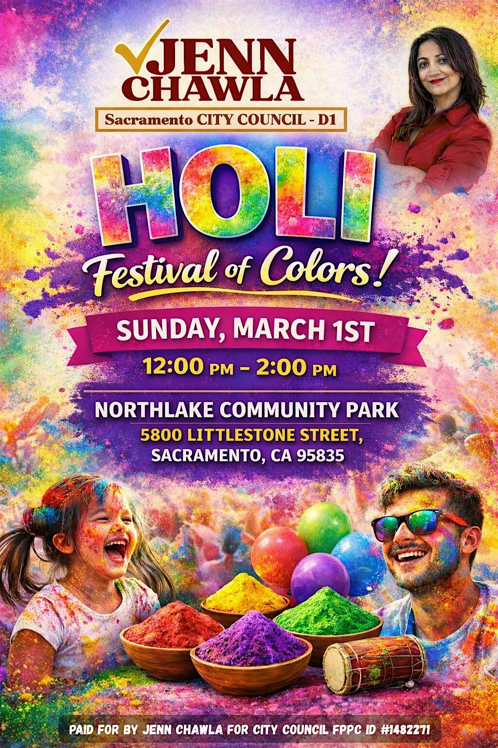 Celebrate spring, community, and togetherness at our Holi: Festival of Colors event! Holi is a traditional celebration of joy, renewal, and unity—and we’re bringing that spirit to Northlake Community Park.