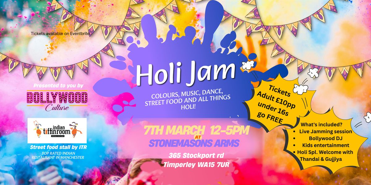 Celebrate the Indian festival of colours in Manchester. Vibrant colours, scrumptious Indian street food, Bollywood jamming session & DJ