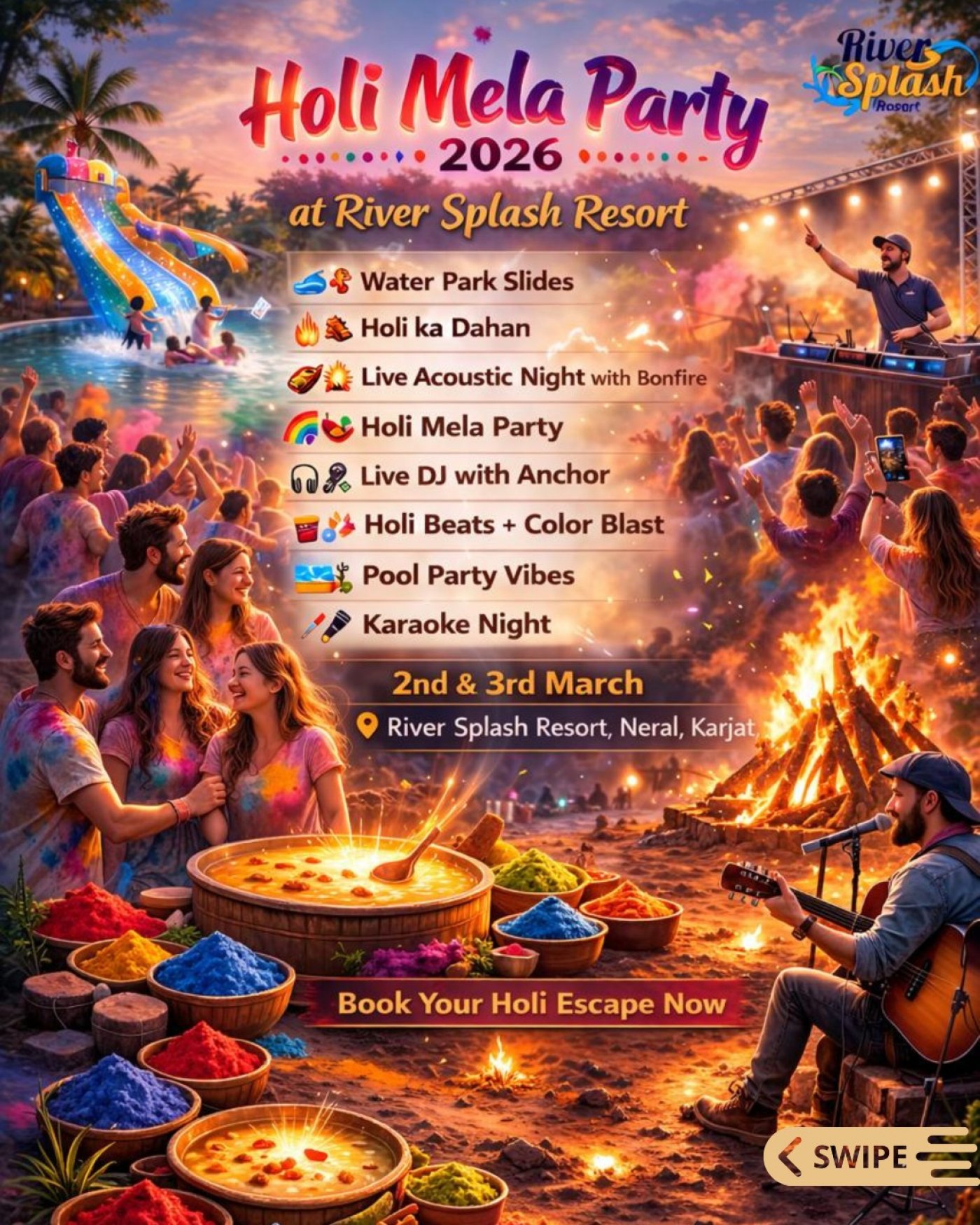 Holi Mela Pool Party 2026 \u2013 River Splash Resort, Neral (Karjat)