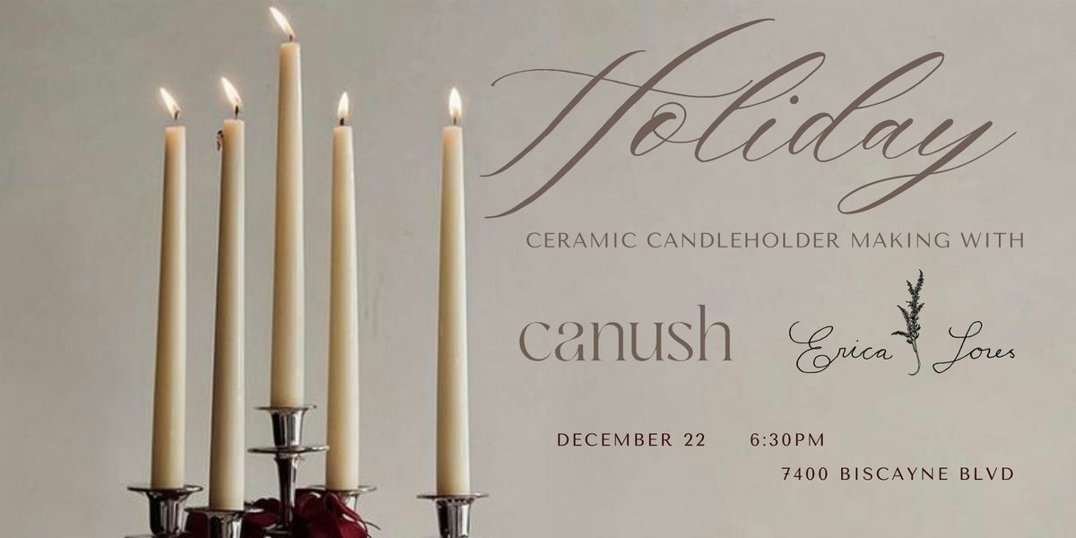All pieces will be glazed with a food-safe clear glaze and fired by Erica Lores in her studio. Finished candleholders will be available for pickup at Canush following the event.