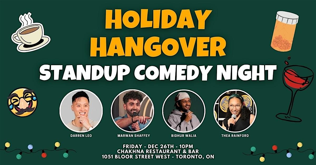 We're bringing a Post-Holiday themed Comedy Night to Chakhna Restaurant & Bar... and you're invited! Featuring a hilarious line-up of comics that have performed at Absolute Comedy, Yuk Yuk's, and throughout cities across Canada! Make sure to reserve your tickets in advance to guarantee your seats!