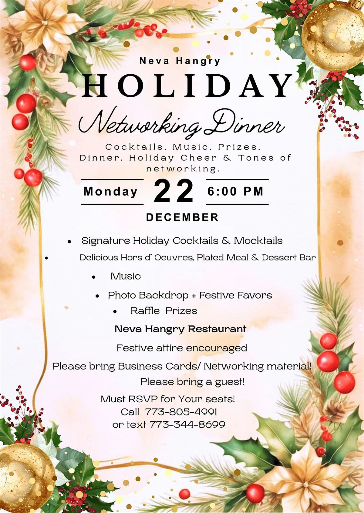 🗣️🗣️Calling all business owners, entrepreneur, bartenders, content creators, influencers, dj's, caters, videographer, photographers, hair styles, makeup arties, ect Neva Hangry is hosting our holiday NETWORKING Diner. RSVP your seats today and get back to networking and making those connections, face-to-face. Be sure to be one of the business owners in the room expanding your resources and business relationships. Dec 22nd @ 6pm-11pm #networkingevent #holidayparties #wrigleyville #infulencer #bartnderlife