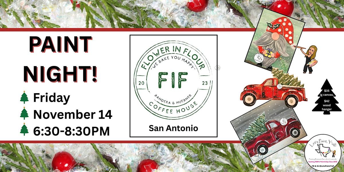 San Antonio! Get ready to unleash your inner artist at Flower in Flour's PAINT NIGHT, where creativity meets relaxation in a fun atmosphere.About this Event