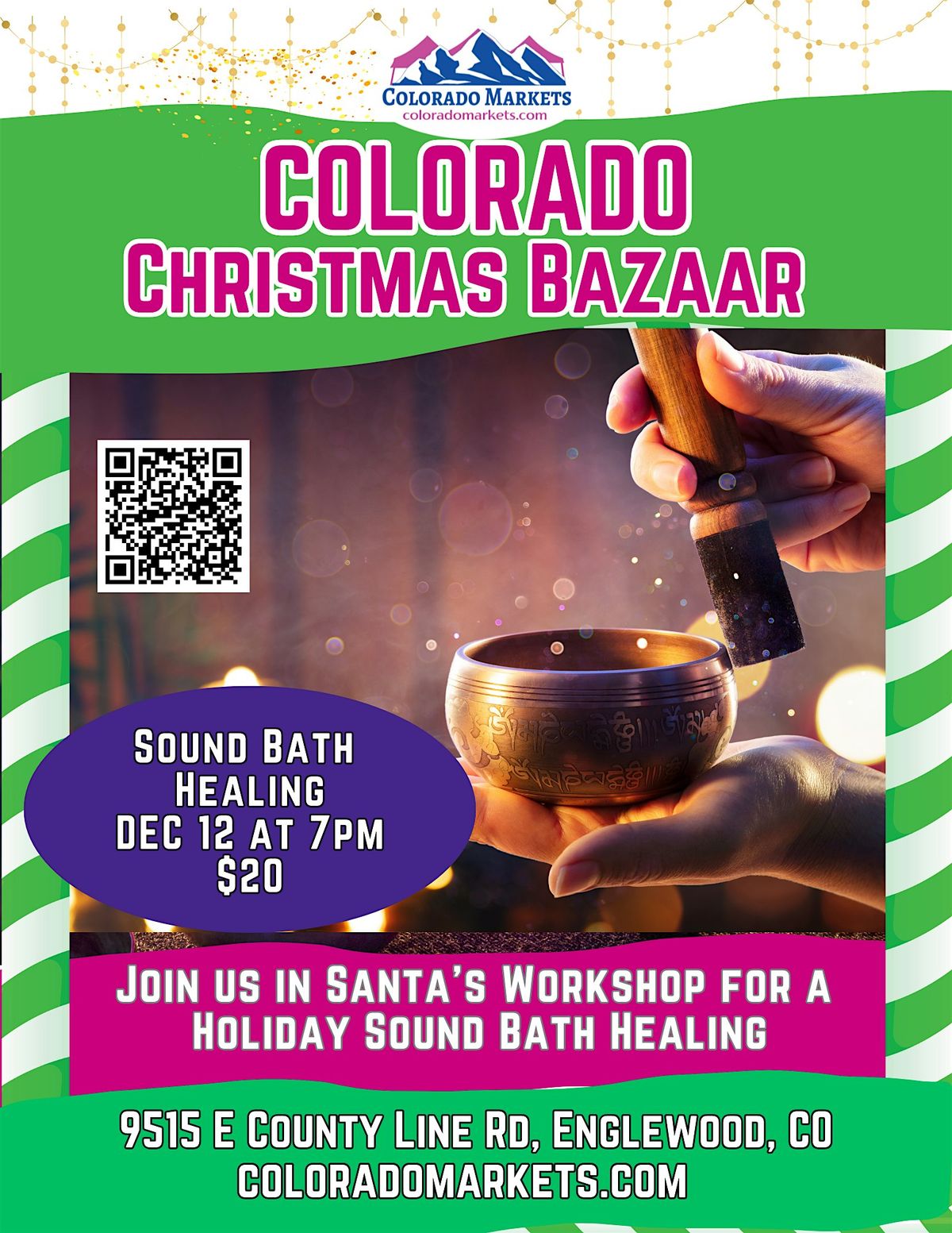 Join us for a peaceful and uplifting Holiday-themed Healing Sound Bath at the Colorado Markets Christmas Bazaar, lovingly guided by Tina Fleming of Vibe With Tina Marie. Tina brings a heart-centered approach to sound healing, blending intuitive energy work with spiritually guided vibrational techniques to create a deeply soothing and restorative experience.