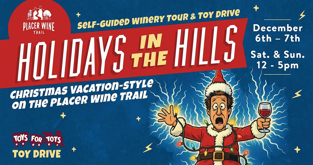 THEME - MEET THE GRISWOLDS - CHRISTMAS VACATION STYLE ON THE PLACER WINE TRAIL! Fire up the RV. Untangle the lights. Pour the wine. Join us for the most over-the-top, wine-filled and fun-filled holiday open house this side of the Sierras! Over two dozen local wineries bringing you cheer - and maybe a squirrel or two! Griswold Family Dress Code Encouraged! (Ask Chat GPT for help or just go for an ugly sweater!)