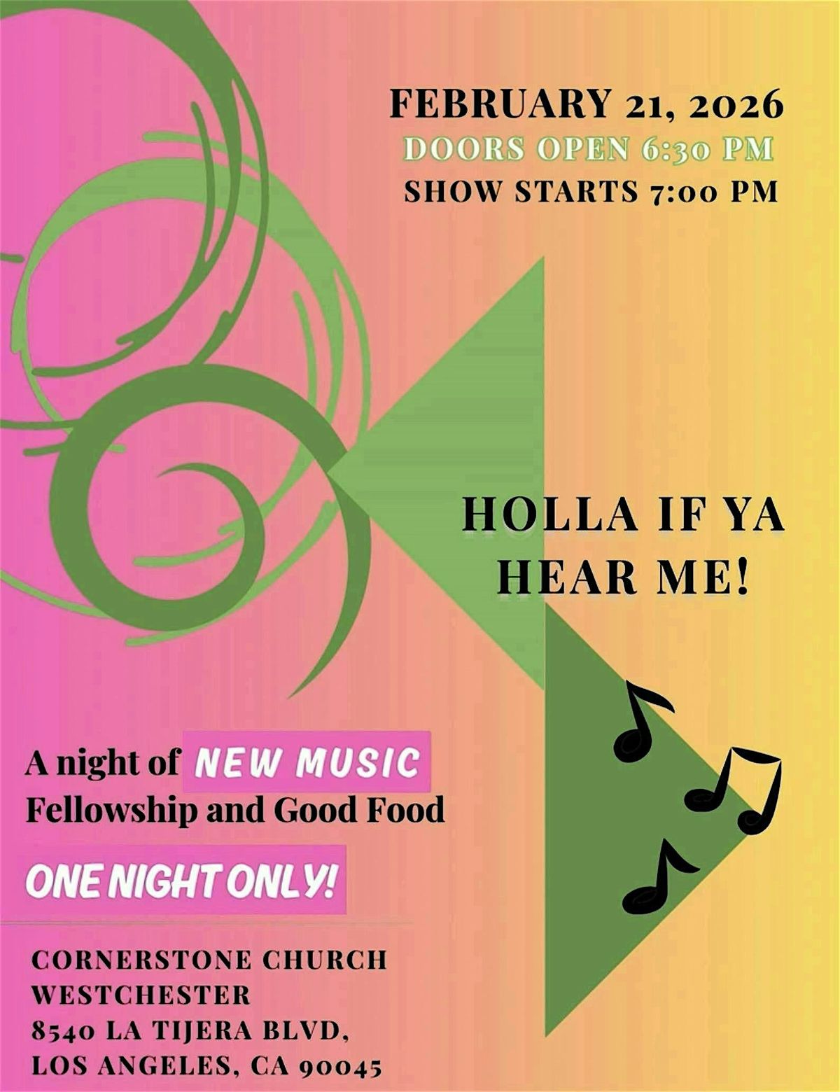 Join us in person for an EP Release & Birthday Celebration filled with hope, gratitude, and powerful praise. Whether you’re coming to rest in His arms or to lift your hands high and give Him glory, Holla If Ya Hear Me is the place to be.