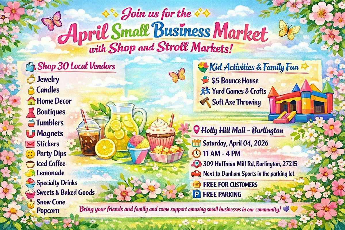 πΈβ¨ Join us for the April Small Business Market with Shop and Stroll Markets! β¨πΈ