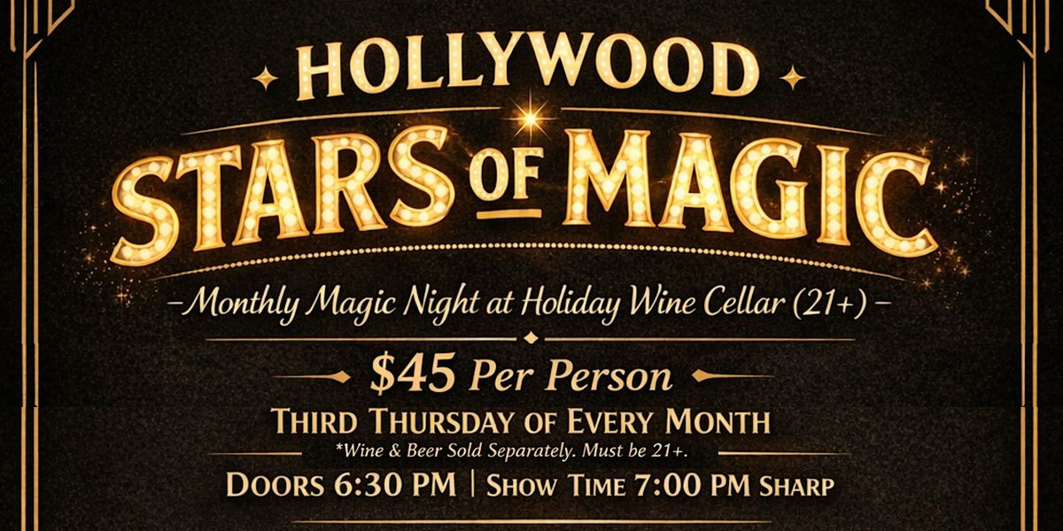 Featuring Hollywood Stars of Magic, direct from the Magic Castle, The Magic Cellar is BACK, returning for its 3rd Year with Hollywood's Top Magicians, more fine wines & delicious craft beers in Holiday Wine Cellar's Beverage Bunker event space. The event features some of the best Magicians from Las Vegas and Hollywood Magic Castle Performers.