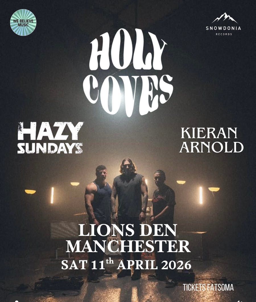 Welsh Awen rock bank Holy Coves return to Manchester’s Lions Den on 11th April 2026 with a show to celebrate the launch of their new single ‘This Stone Is Heavy’.To be followed by an after party!!support comes from HAZY SUNDAYS and KIERAN ARNOLD